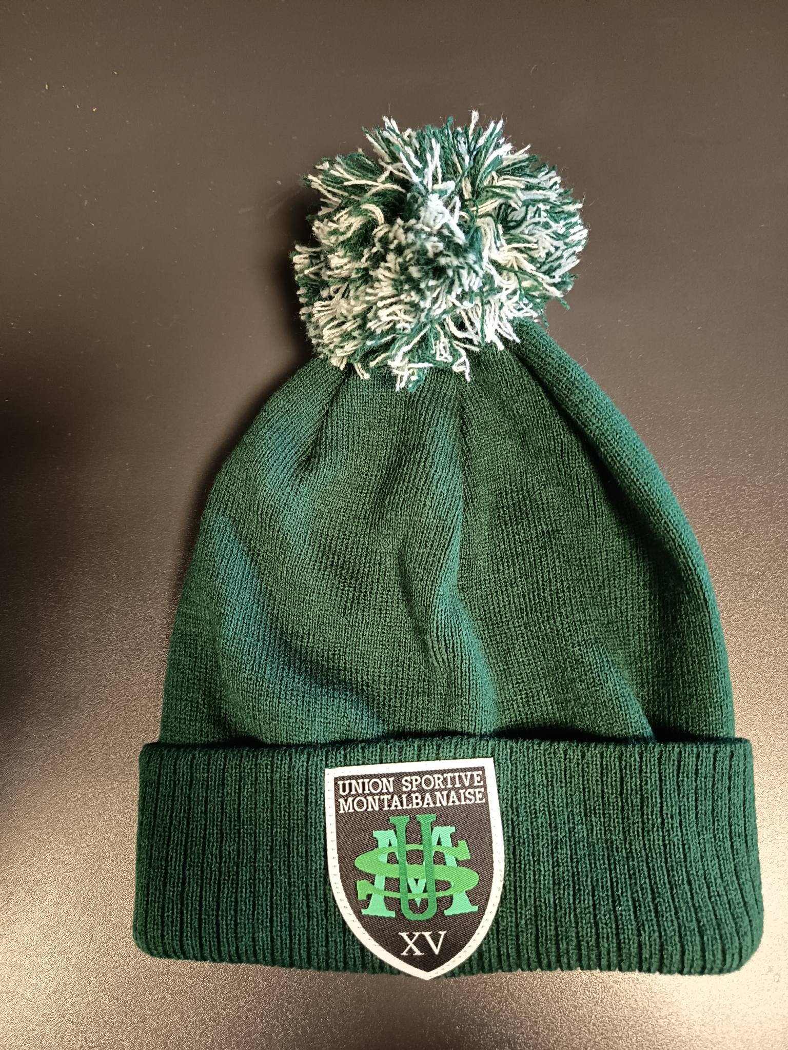 BONNET VERT POMPON VERT ET BLANC